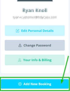 Once logged in, click the blue “Add New Booking” button. If you’re on a mobile device you may need to scroll down slightly in order to see the Add New Booking button.